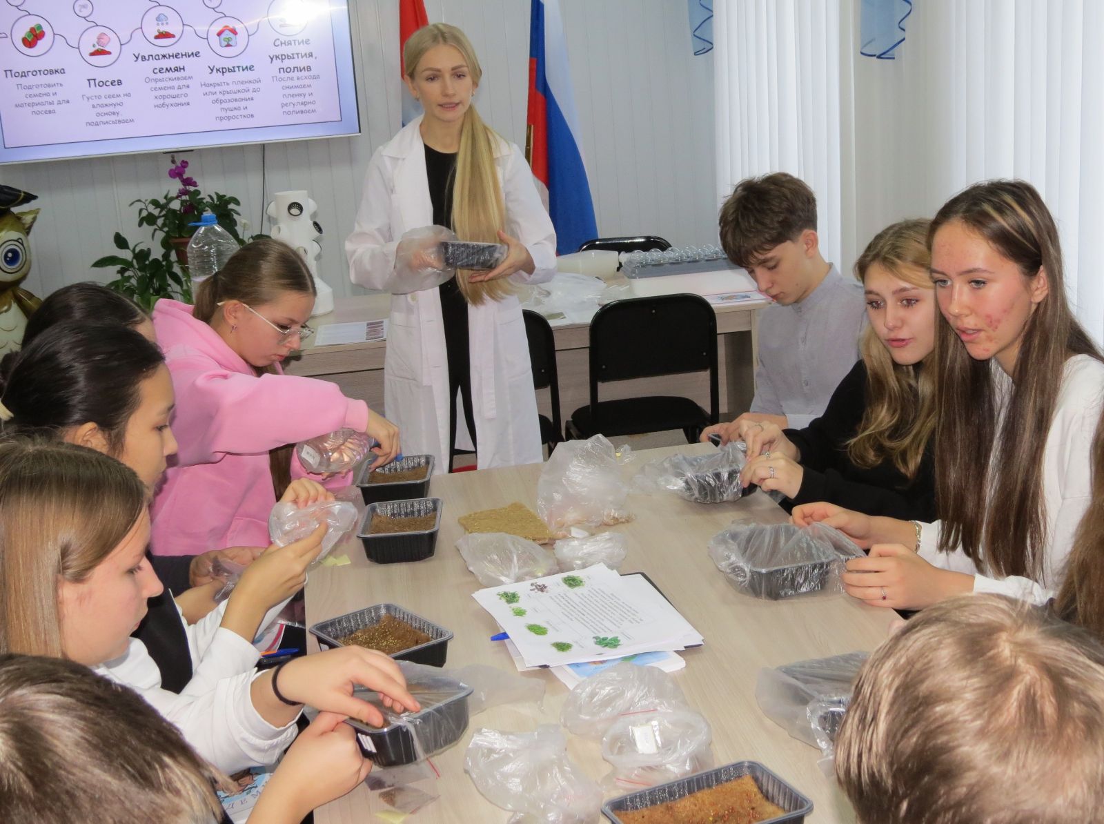 Куратор агротехнологической лаборатории Ольга Андреевна Коцюбинская, доцент ОмГАУ, объяснила, что такое сити-фермерство, и под ее руководством старшеклассники посеяли на «умной грядке» микрозелень, которую уже через неделю можно будет съесть. В инженерной лаборатории Альберт Артурович Нугманов, рассказал об устройстве, разновидностях дронов и их применении в агрономии и предложил ребятам самим поуправлять дроном на симуляторе. А в бизнес-экономической лаборатории вместе с доцентом Динар Рахметуловной Баетовой школьники разбирали очень серьезную тему трендов и реалий экономики будущего.